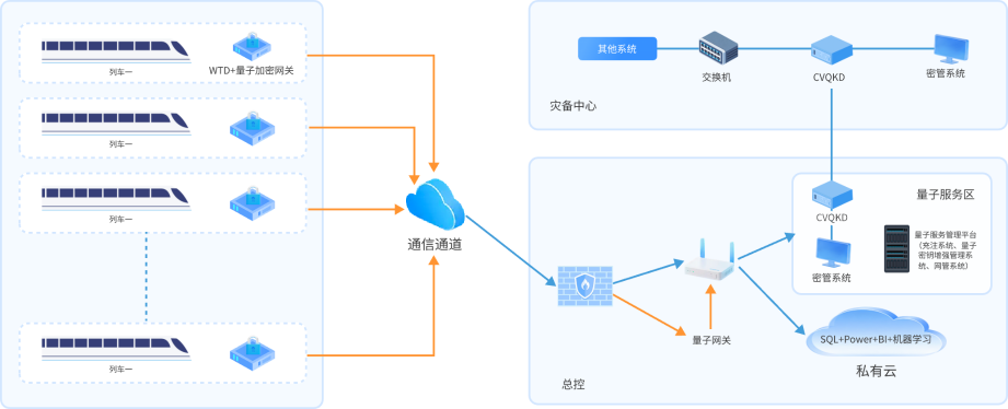 在地铁运营数据传输体系中,车地安全通信处于核心地位,负责传输列车与地面控制中心间的调度、运行监测及乘客安全等关键数据,直接关乎地铁运营的安全与稳定。受无线传输特性、隧道复杂电磁环境及移动信号波动等因素影响,车地通信长期以来都是数据传输安全的薄弱环节,存在数据窃听、篡改等安全隐患,对地铁运营安全构成严重威胁。因此,如何破解车地数据传输“最后一公里”的安全瓶颈,构建高效、可靠、防窃听的车地安全通信机制,已成为轨道交通行业在数字化、智能化转型过程中亟待解决的重点课题,也是保障地铁运营安全、提升运营管理水平的关键突破口。针对这一行业痛点,移动量子加密方案的引入与应用,为车地之间数据传输安全性问题提供了根本性的解决方案。量子加密技术凭借其不可窃听、不可破解、可检测窃听行为的独特技术优势,能够从本质上抵御各类网络攻击与数据泄露风险,确保车地之间传输的各类敏感数据(如调度指令、安全监测数据等)的完整性、机密性与真实性。更为突出的是,该移动量子加密方案无需对地铁现有网络架构进行大规模改造,可直接依托既有的车地通信网络结构进行部署实施,不仅部署流程简便、成本可控,而且在部署及后续运行过程中,不会对现有地铁运营网络的正常运行造成任何干扰与影响,能够实现与现有系统的无缝兼容,有效降低了方案落地的难度与风险。
