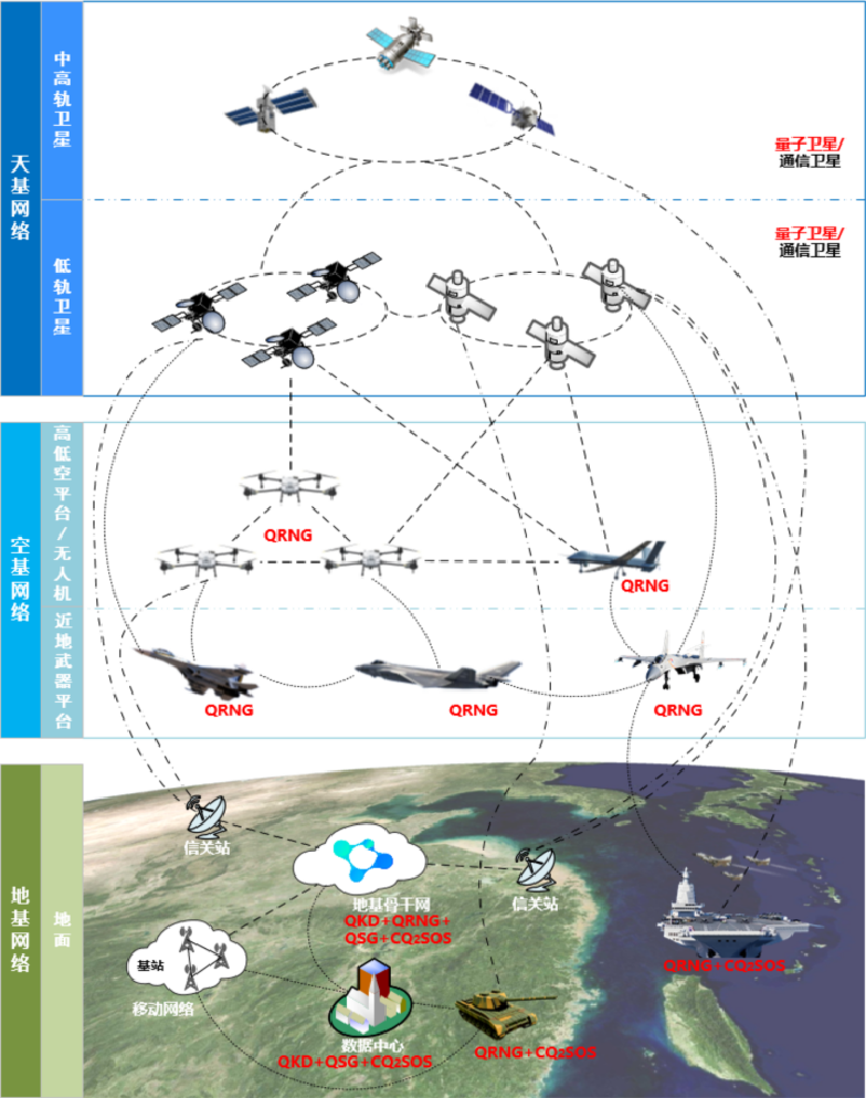 支撑陆、海、空、天一体化量子保密通信,保障指挥指令、情报、武器控制数据的安全传输。